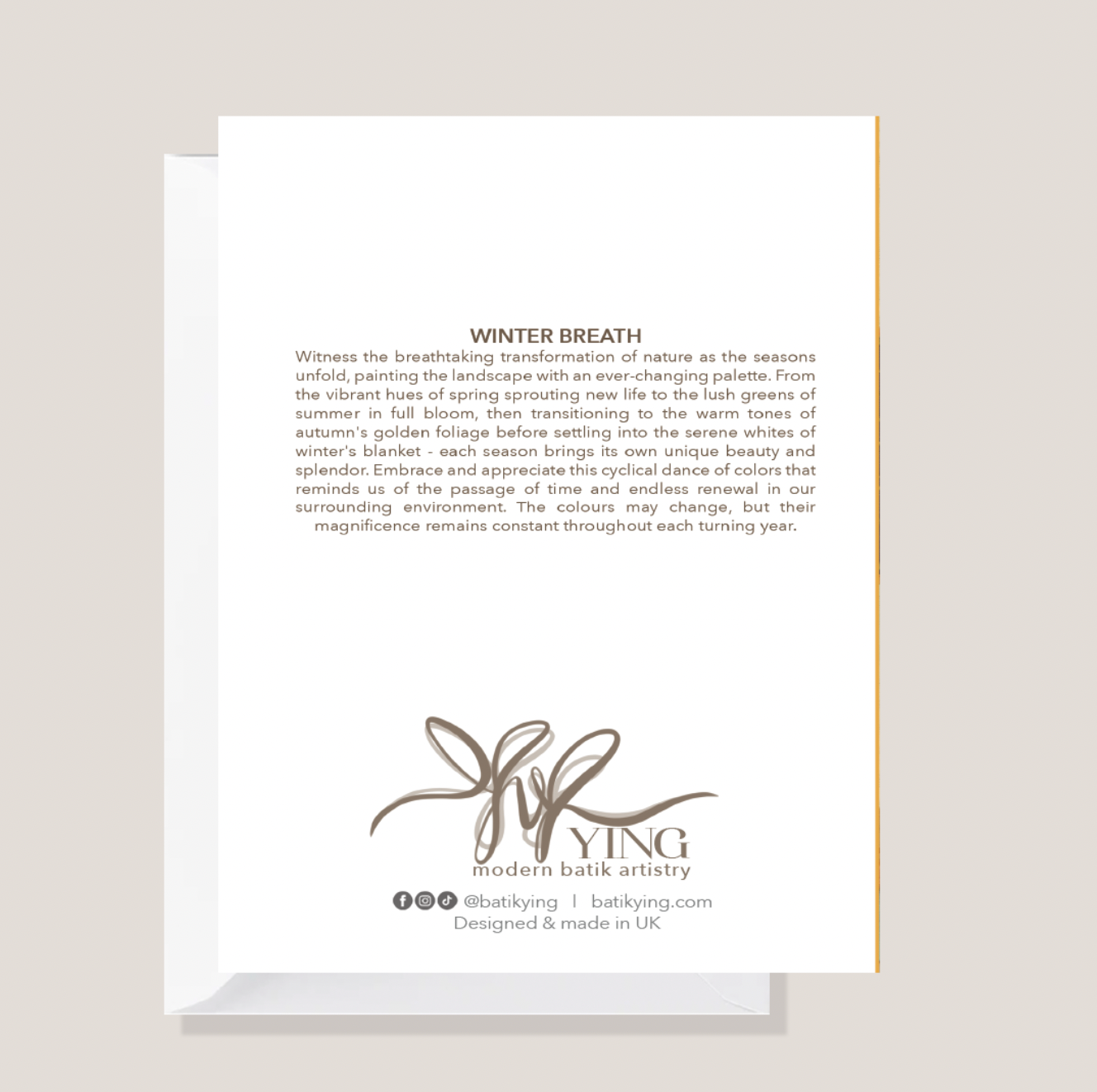 Our greeting card has been designed by YING from an original batik art, and printed onto a lovely 300gsm gesso textured card paper stock.